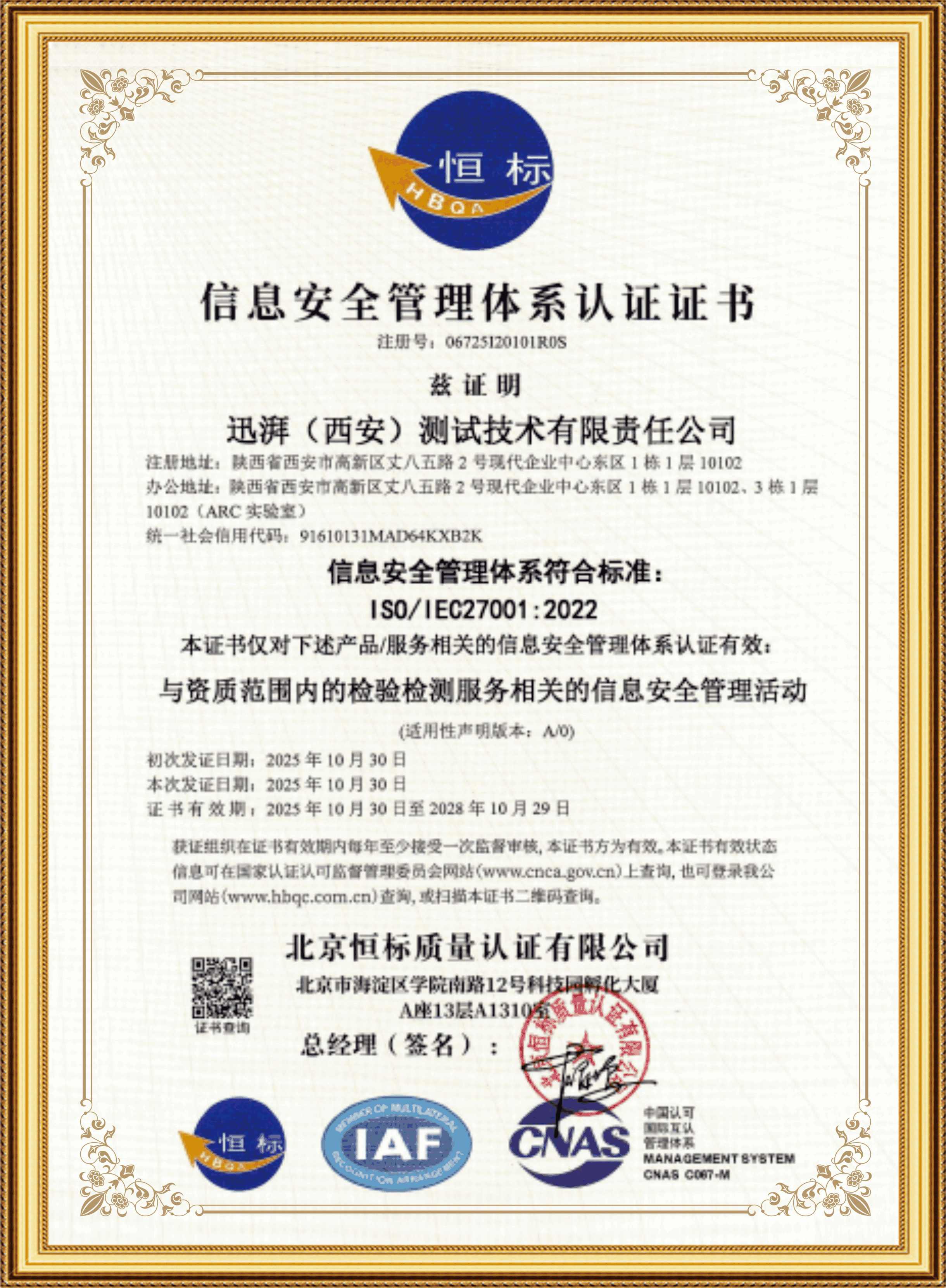 Stropower (Xi'an) Testing Technology Co., Ltd. is a professional service provider dedicated to lithium-ion battery testing. It has obtained the CNAS-CL01 (ISO/IEC 17025:2017) accreditation from the China National Accreditation Service for Conformity Assessment (CNAS), the CMA qualification for inspection and testing institutions, as well as the ISO/IEC 27001:2022 Information Security Management System Certification.