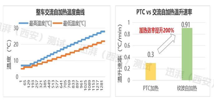 Compared with the PTC heating of the entire vehicle, AC self-heating can heat the battery to the optimal working temperature more quickly.
