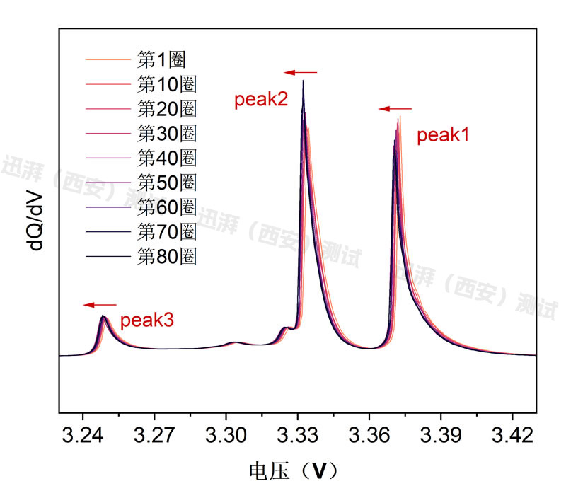 Peak1, Peak2, Peak3 peak positions shift to the left, battery internal resistance reduces